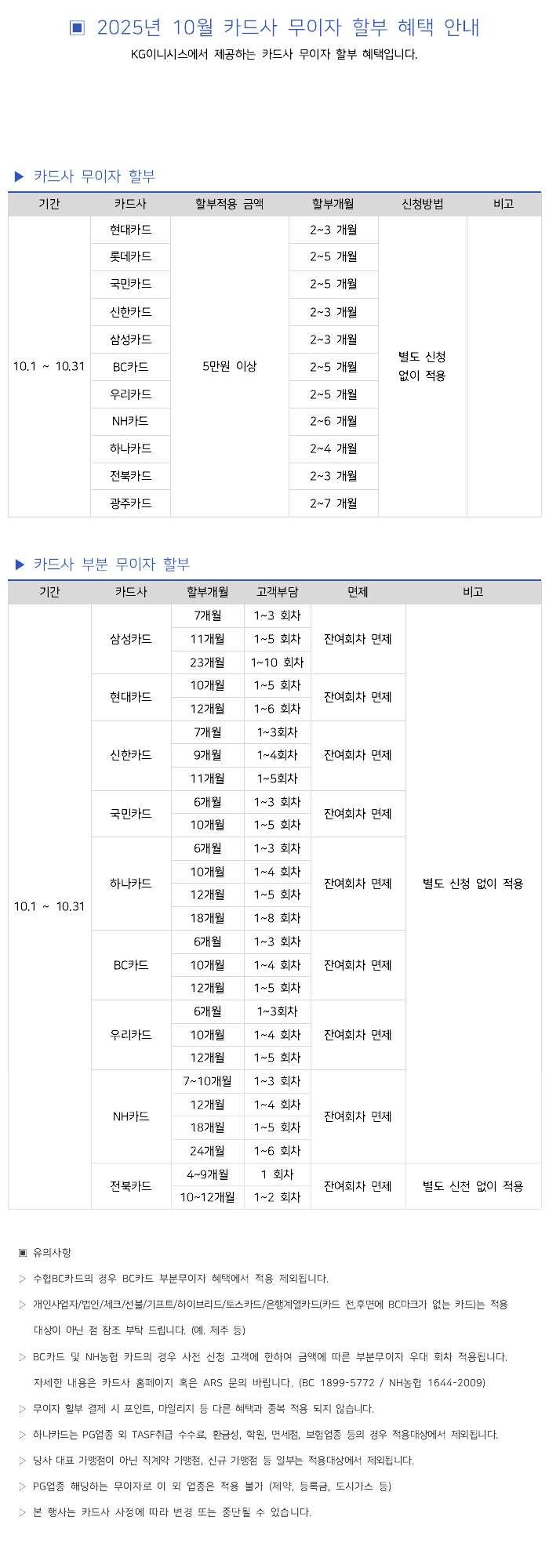 제 목 | 2025년 10월 카드사별 무이자 할부안내 |