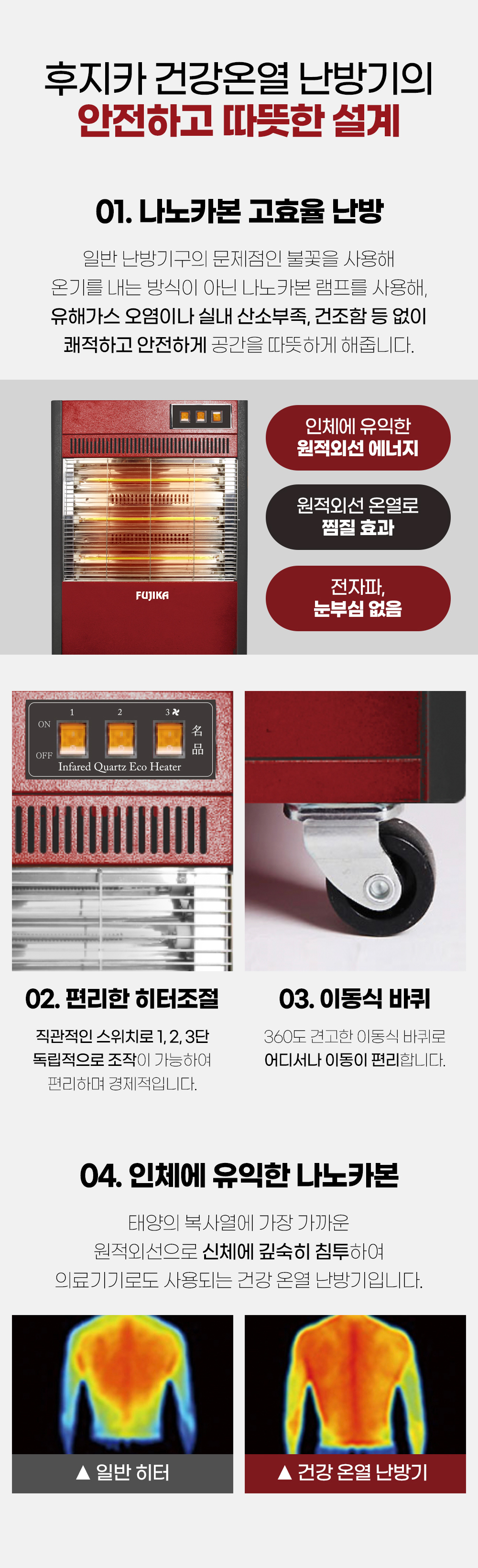 3단 건강온열 카본온풍기6평(3.000W)레드&진회색(투톤)