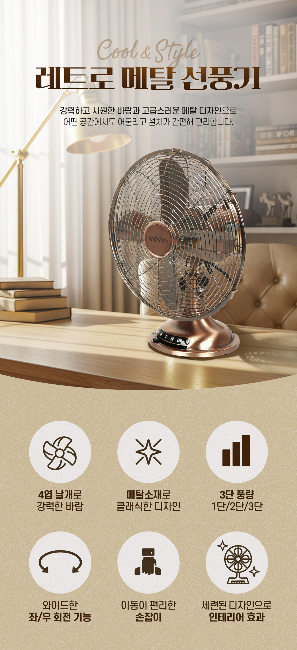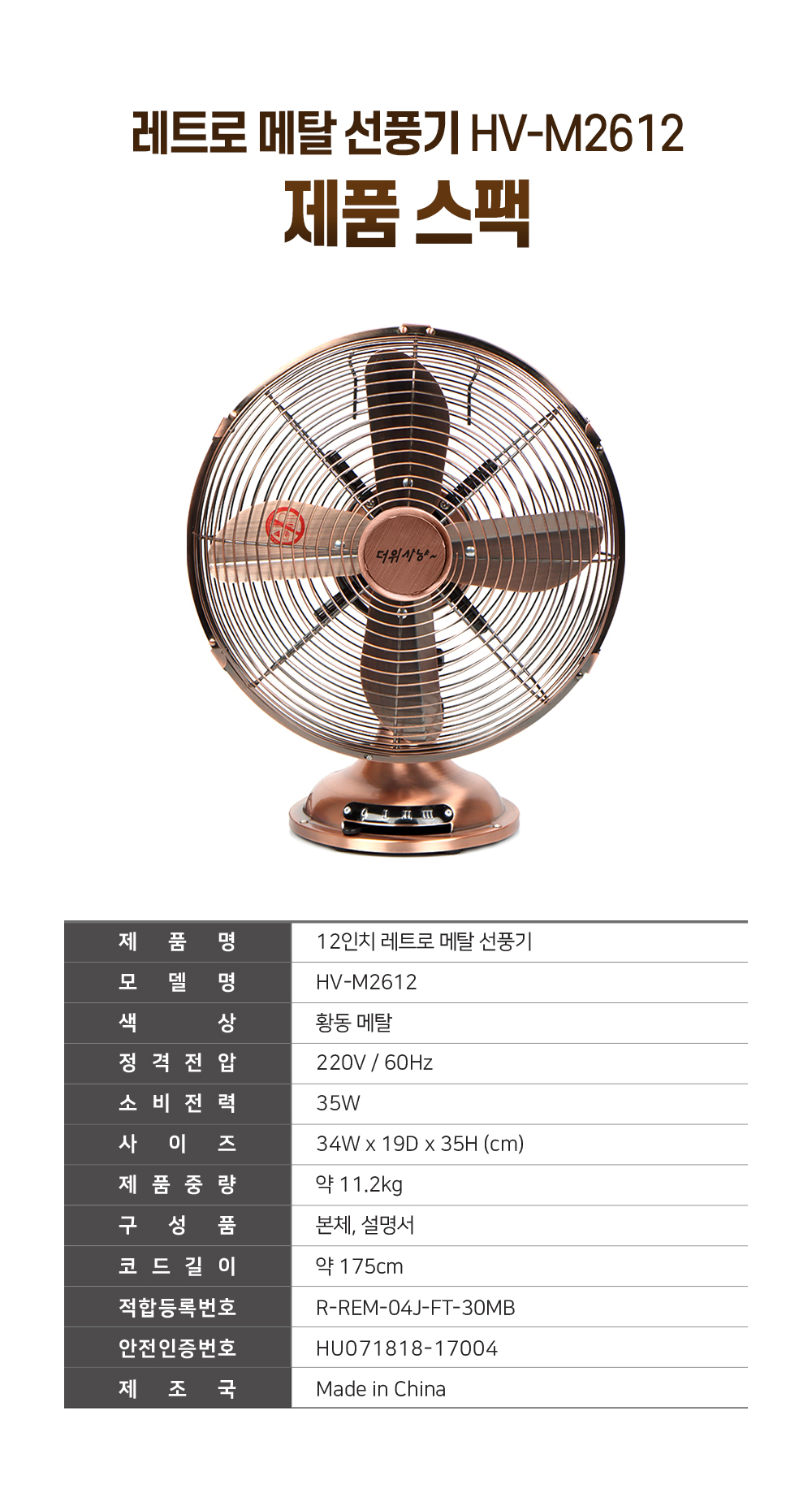 한빛 사무용, 가정용레트로메탈선풍기(12인치)부가세포함,무료배송