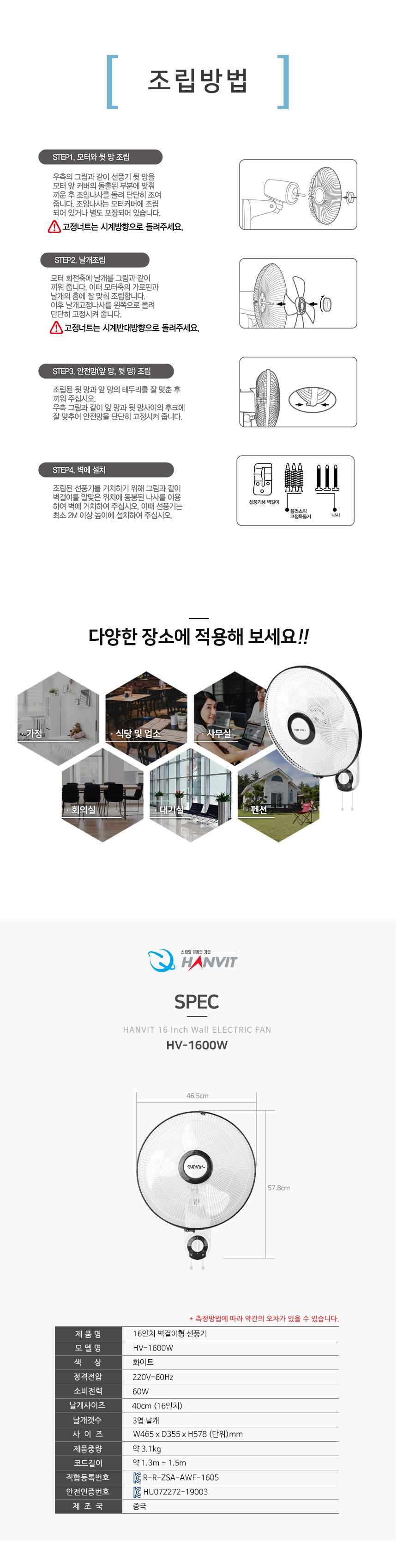 한빛 사무용,업소용선풍기벽걸이형/16인치부가세포함,무료배송