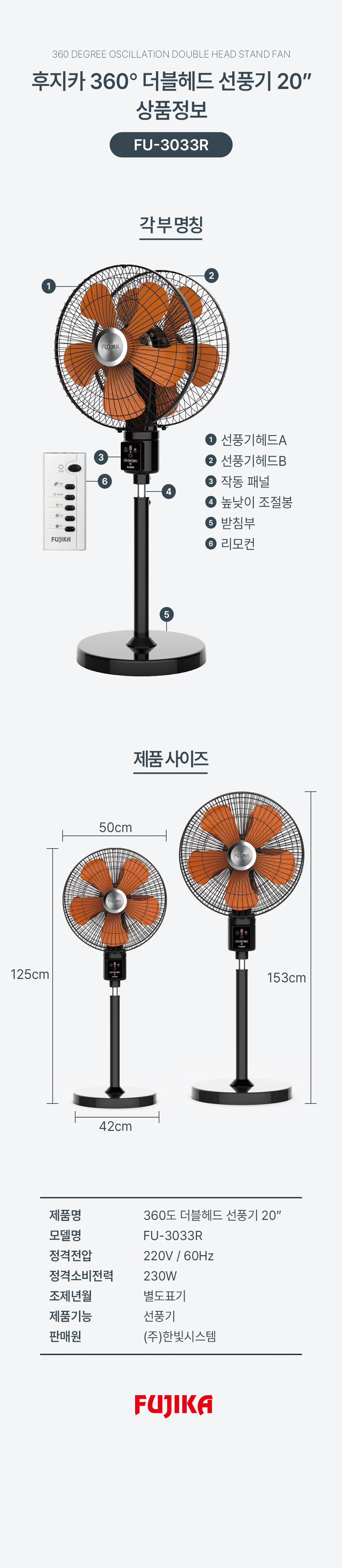 후지카 대형선풍기(블랙)더블해드,양면(20인치)부가세포함,무료배송
