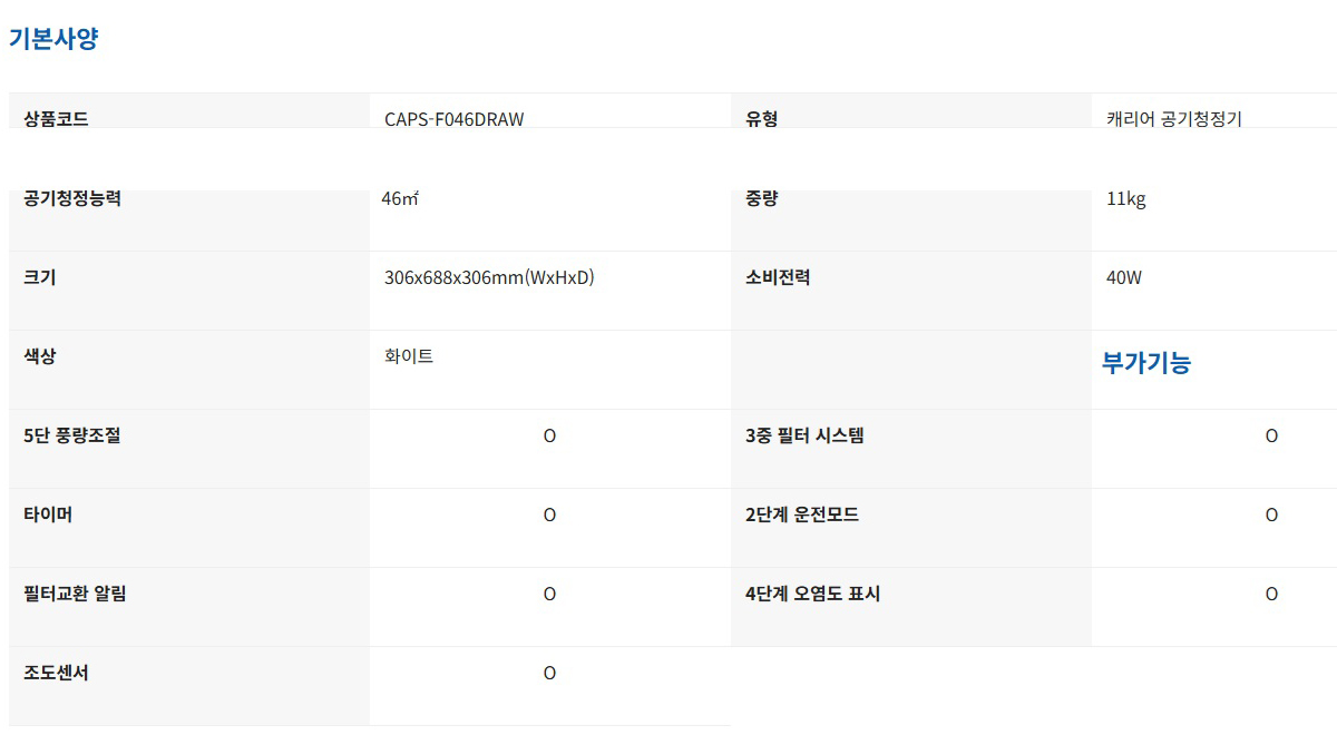 캐리어 공기청정기가정,사무실(46㎡)나노이강력제균,탈취