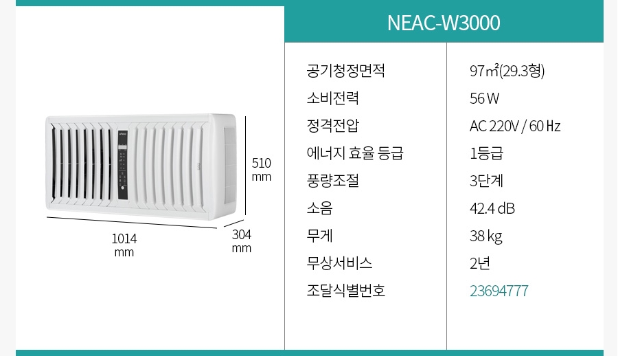 벽걸이형공기청정기97㎡(29.3평형)부가세포함,무료배송